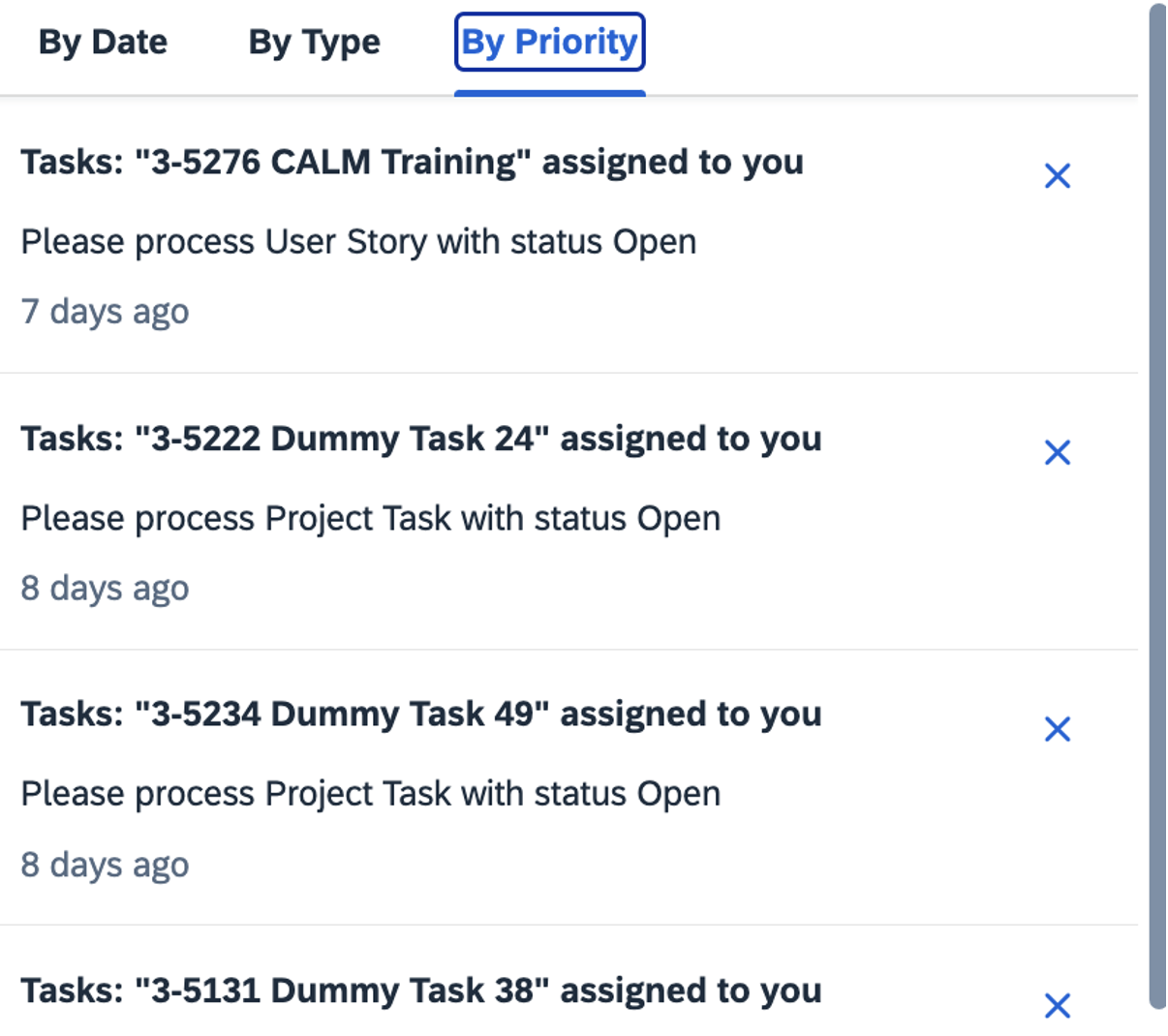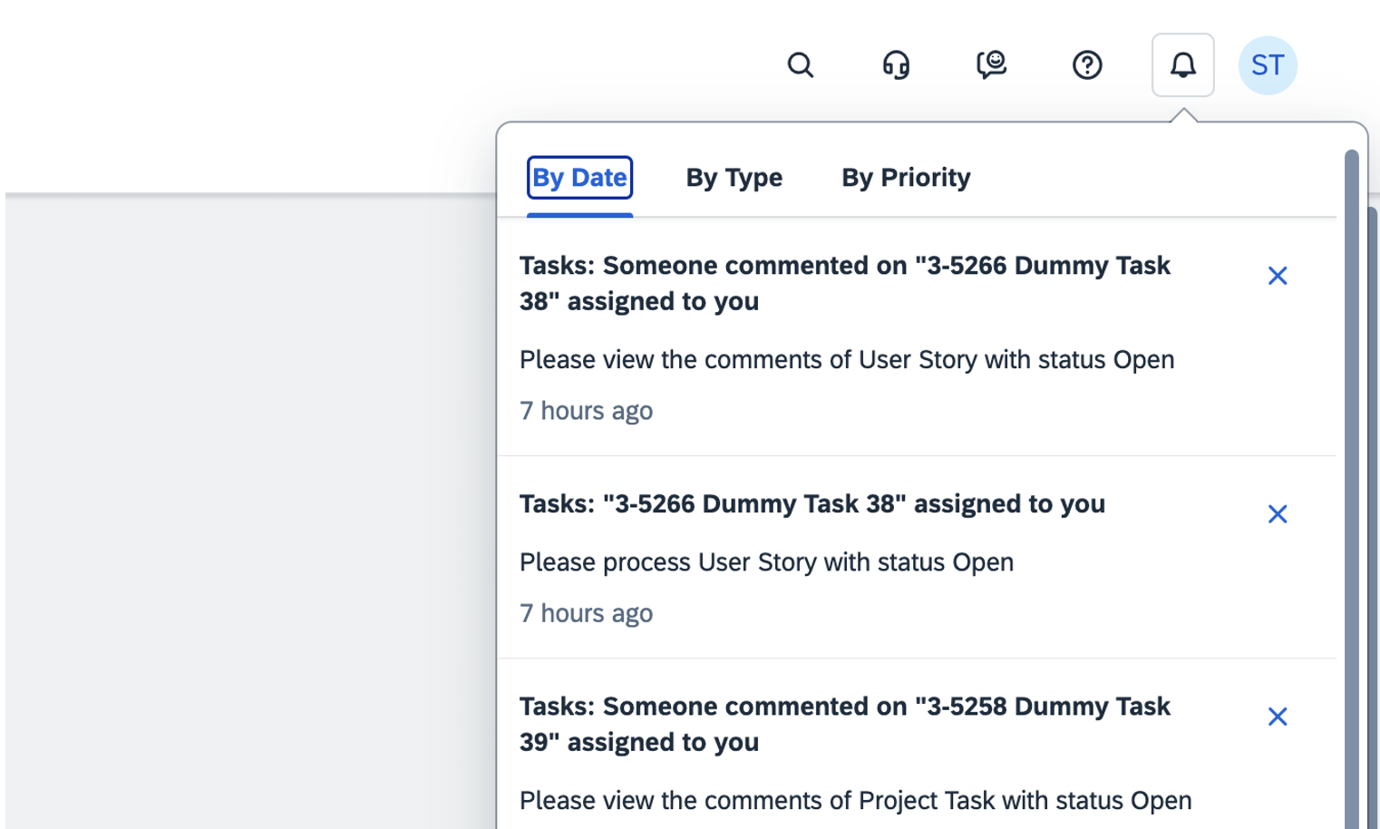 Sobald eine neue Aufgabe oder ein Defect vorliegt, erhältst du eine In-App Benachrichtigung. Diese kannst du direkt im SAP Cloud ALM sehen, indem du auf das Glocken-Symbol klickst. Hier werden dir alle relevanten Benachrichtigungen der letzten Zeit aufgelistet, sodass du nichts Wichtiges verpasst.