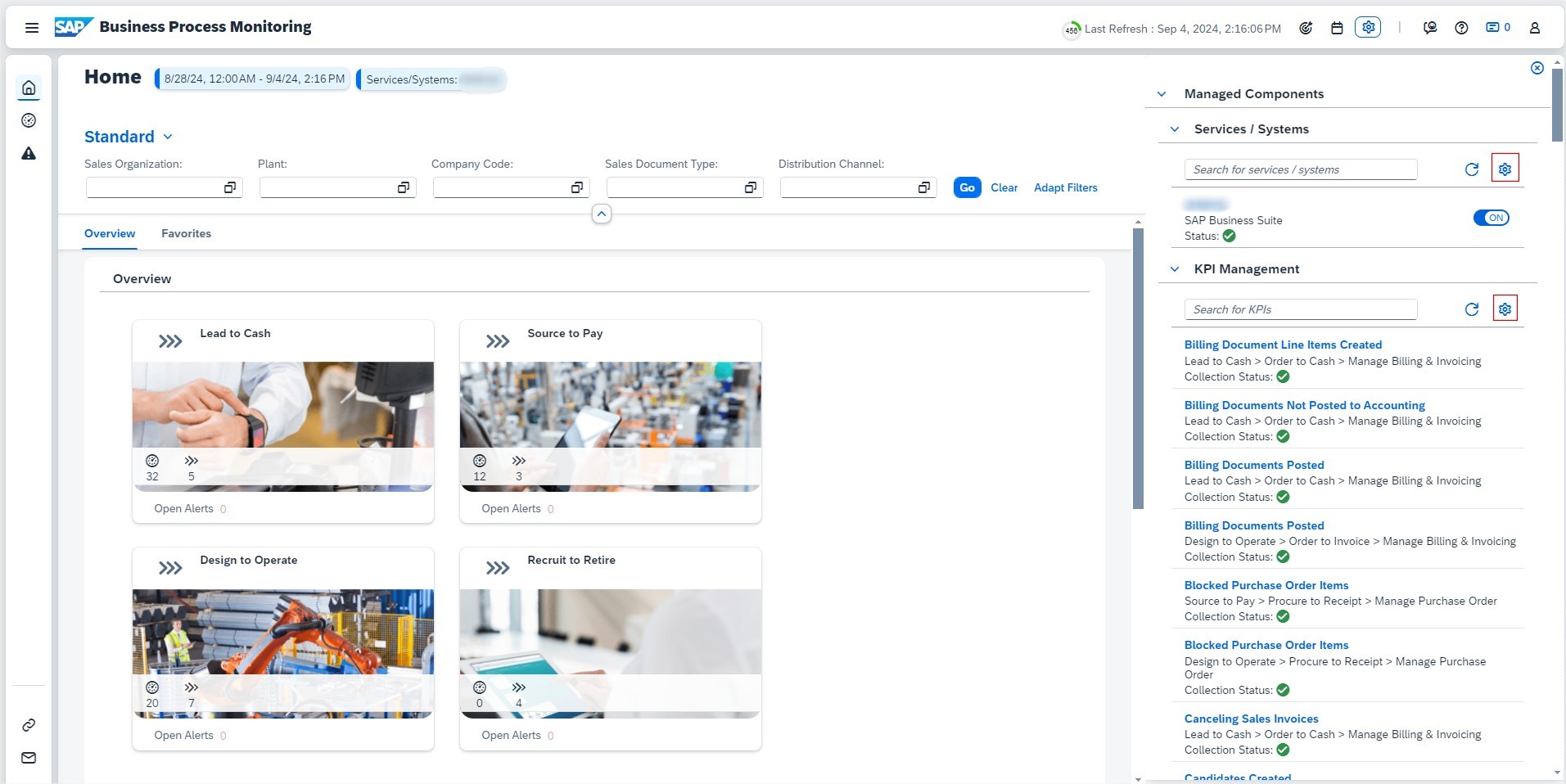 • The sections in the configuration panel have been reordered. Services and systems and the KPI management are now found under Managed Components.