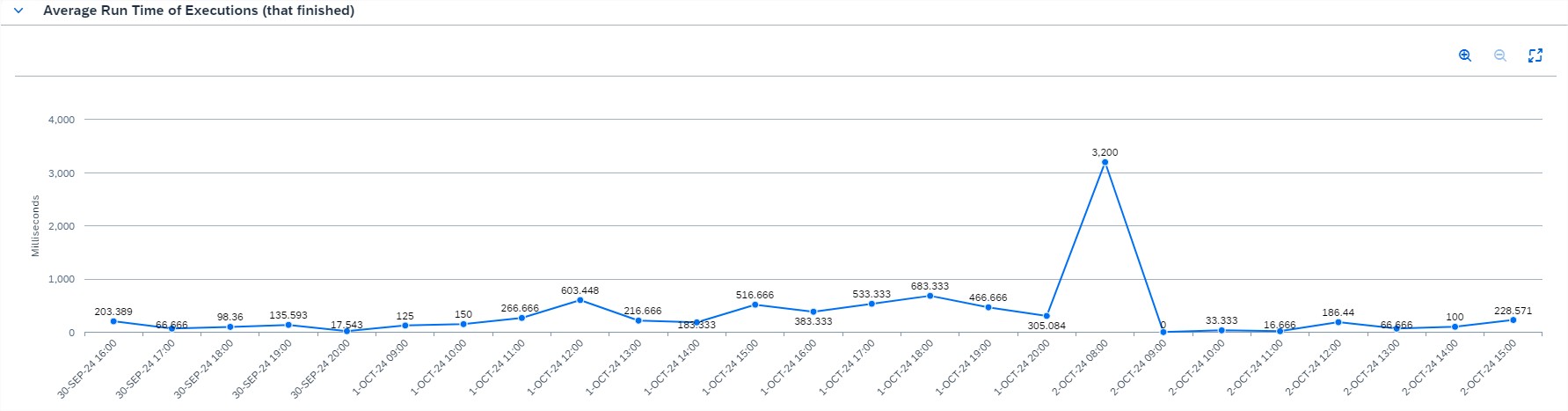 Job & Automation Monitoring allows now to monitor the Average Run Time of Executions (that finished) and Total Run Time of Executions (that were running) trend charts in milliseconds, seconds, minutes, or hours. Earlier, the average run time was monitored only in seconds and the total run time was monitored only in minutes.