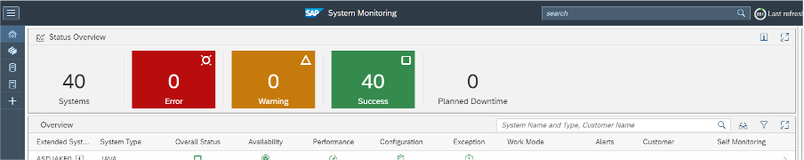 • Configuration allows to have information about system settings. For example, in the production system global changes are allowed, system maintenance license is expired or even failed transports on the ABAP system in any of the system on the landscape.