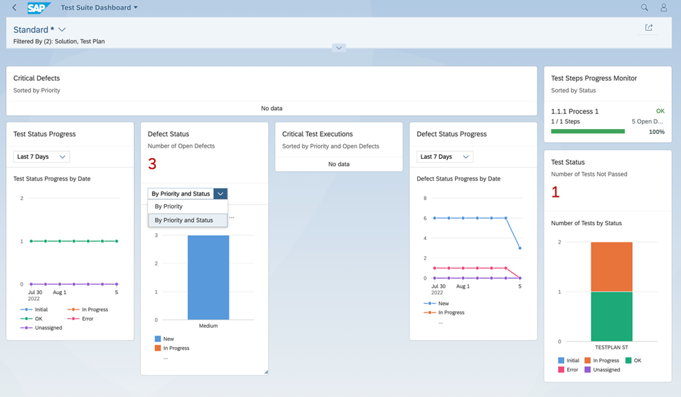 One of the biggest development pieces was the completely new designed Test Suite Dashboard. This was also one of the reasons why we are already productive with the new Support Package at the first of our customers. The new dashboard is very well done and reminds us of the great analytics features of SAP Cloud ALM – very well done SAP!
