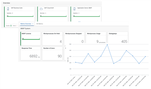 Health Monitoring provides technical metrics for cloud services and systems. Based on these collected data, a overall health of the monitored object is calculated. Different service types have different predefined metrics. It’s a light-weights system monitoring tool for ABAP systems, covering the most important features like response time, dumps, memory, host data etc.