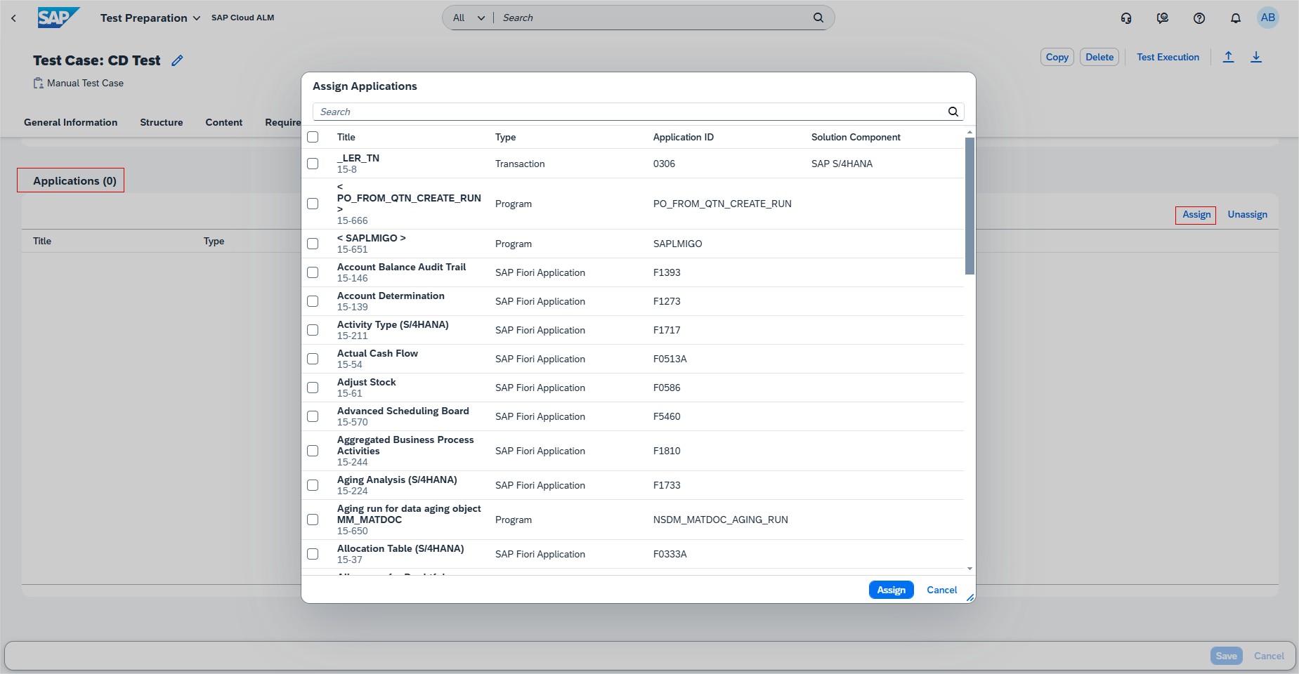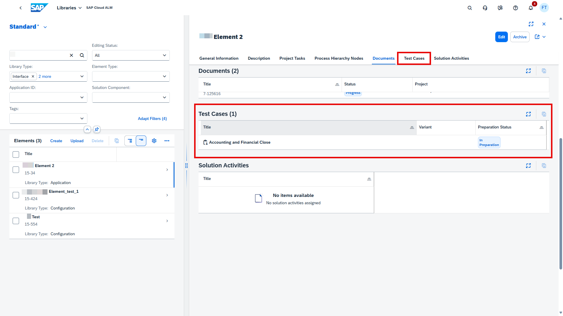 It’s now possible to assign application library elements to test cases. This helps to ensure the application’s test coverage and improve overall traceability throughout the implementation project. It also allows to track the statuses of related test cases from the Libraries app.
