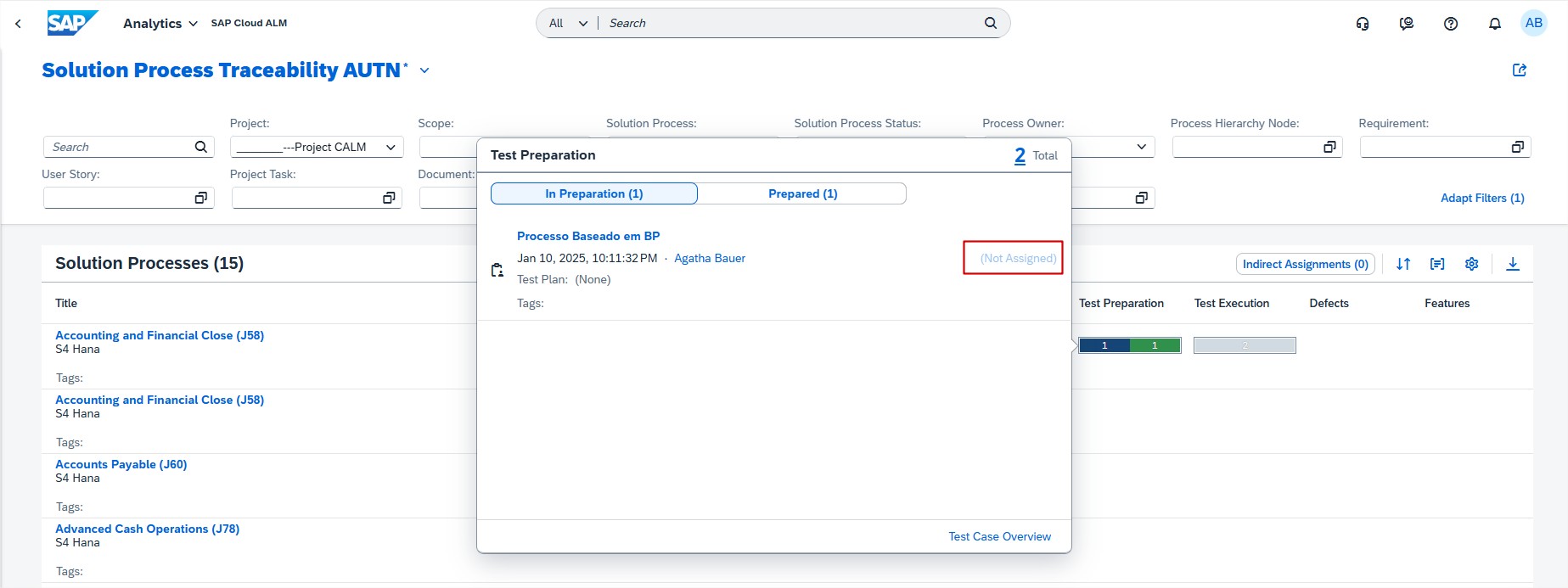 In the Solution Process Traceability, Requirement Traceability, and User Story Traceability apps, we can now find the test case owner in the popup that appears when clicking on a bar chart in the Test Preparation column.