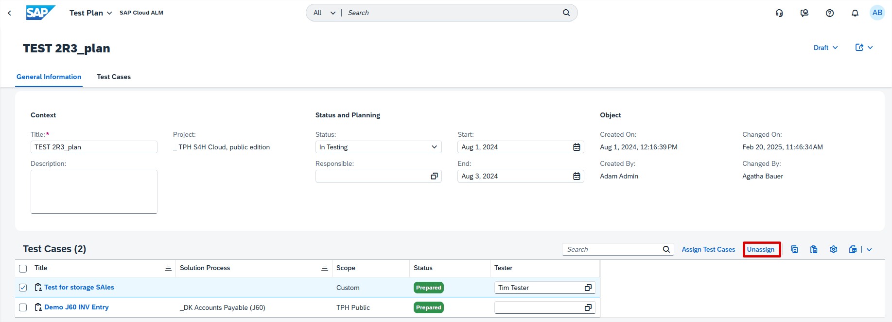 Test Plans introduced Role-based restrictions on deleting and unassigning. To prevent accidental loss of test results, the following actions are now restricted to users with the role Project Administrator or Project Lead: