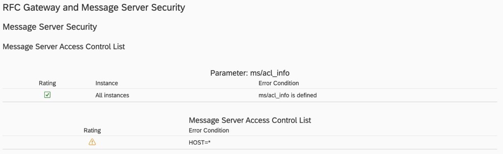 In the communications section the EWA shows e.g. insufficient password protection in DB connections or an insecure internl network configuration of a SAP HANA Database. It checks for insecure Gateway configuration or the Access Control List.