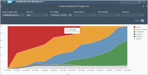 Since most PMs love burndown charts, SAP has probably introduced the progress dashboard: Here you can see the status of the simplification elements and their activities summarised in a burndown diagram. And so tracking the S/4HANA conversion project is also a pleasure.