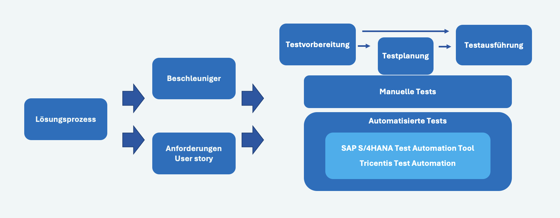 SAP Cloud ALM lässt sich mit Automatisierungswerkzeugen wie Tricentis Test Automation integrieren, das für Enterprise Support-Kunden kostenlos zur Verfügung steht. Automatisierte Tests werden mit Prozessen, Anforderungen und User Stories verknüpft, um eine vollständige Nachvollziehbarkeit zu gewährleisten. Unten siehst du einen Überblick über die Testorchestrierung mit Tricentis.