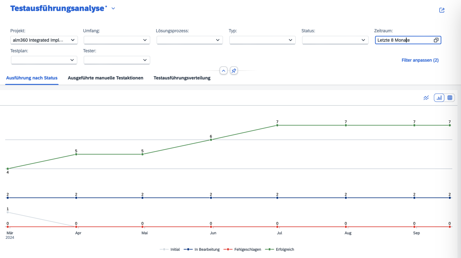 Die Analytik spielt bei der Testorchestrierung von SAP Cloud ALM eine wichtige Rolle. Die Benutzer können Berichte über den Fortschritt der Testdurchführung, Defekttrends und die Bereitschaft zur Produktivstellung erstellen. Diese Transparenz stellt sicher, dass Probleme frühzeitig erkannt werden, damit sich die Teams auf die Lösung von Problemen vor der Bereitstellung konzentrieren können.