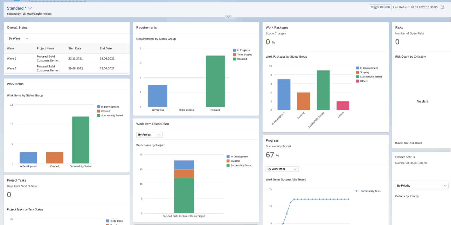 Top #2: Das neue Solution Readiness Dashboard ist nun komplett im neuen Fiori Design und bietet eine umfassende Übersicht über den Status des Projekts. Welche Workpackages und Workitems sind verspätet? Wo fehlt noch eine funktionale/technische Spezifikation oder der Testfall? Mit dem Solution Readiness Dashboard behalten Sie jederzeit den Überblick über den Fortschritt des Projekts, und Engpässe oder Verzögerungen können frühzeitig erkannt und Gegenmaßnahmen ergriffen werden.