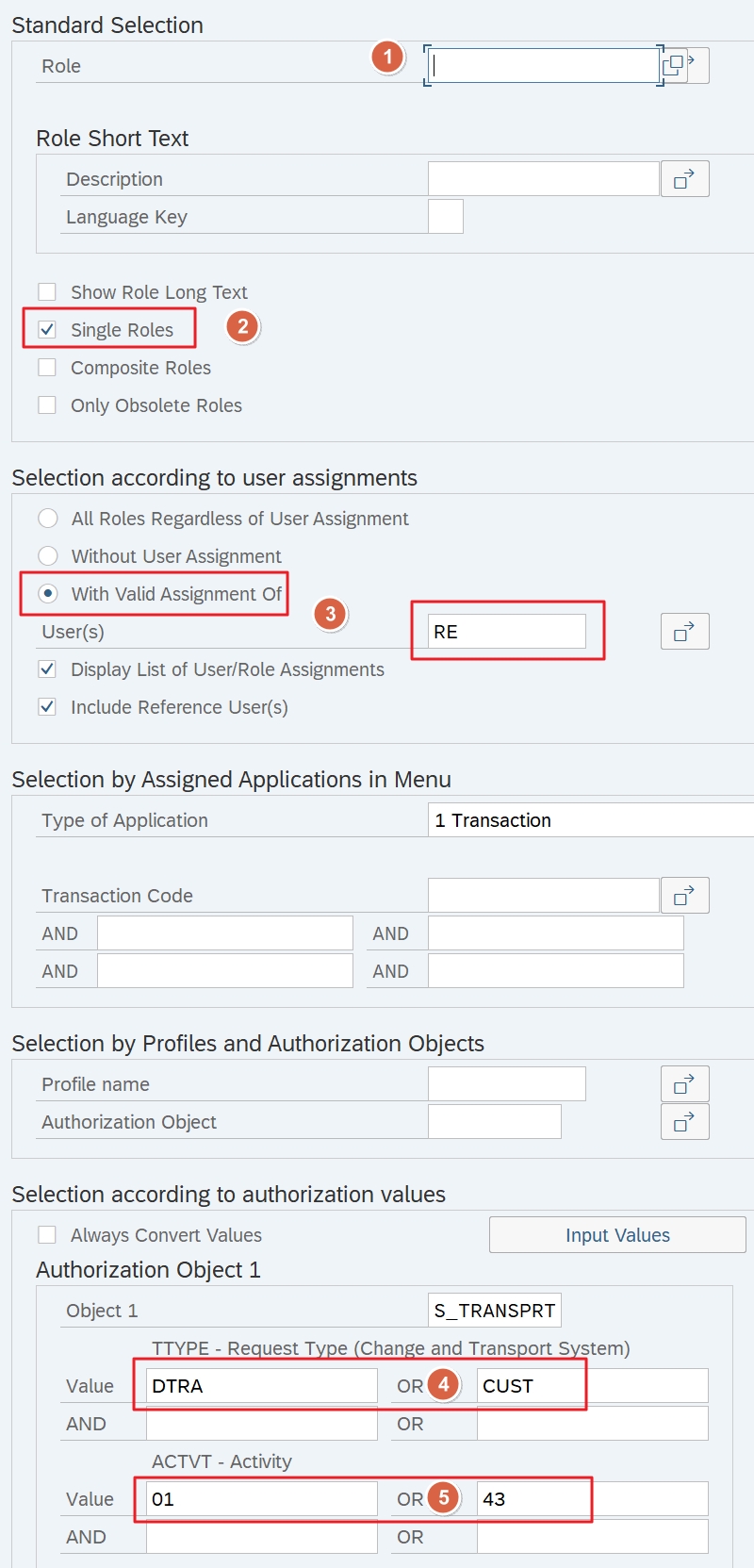 First, you have to use transaction SUIM to search for all roles that have S_TRANSPRT with ACTVT=01 “Create” or =43 “Release.” To restrict the results list to the roles that are actually used, you can display the extended selection options, which are rarely used: