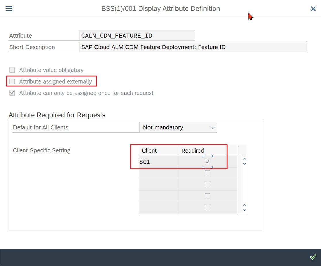 You could now set the transport attribute CALM_CDM_FEATURE_ID, which was introduced with note 3322679 “SAP Cloud ALM – CDM: Master Note up to ST-PI SP 24” to mandatory for the work client: