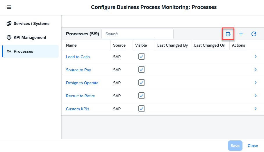Existing business process structures from the Process Hierarchy app can now be imported directly into Business Process Monitoring. Imported nodes behave like any custom process and can immediately be enriched with KPIs.