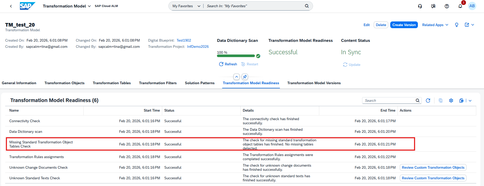 ​This functionality is managed through the new Missing Standard Transformation Object Tables Check, available in the Manage Transformation Models app as part of the Transformation Model Readiness checks.