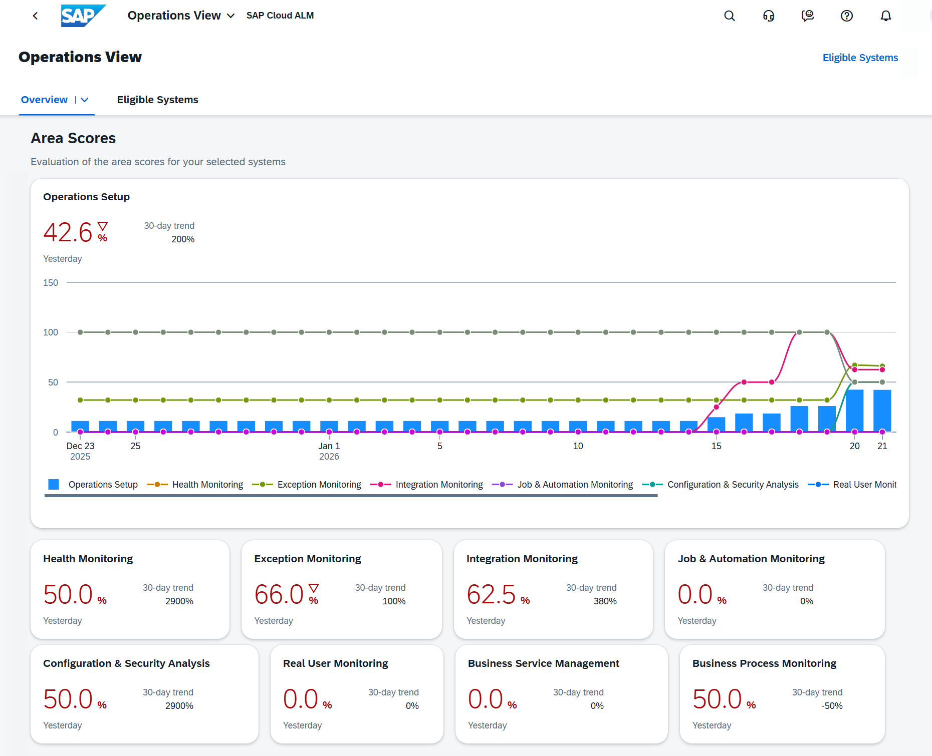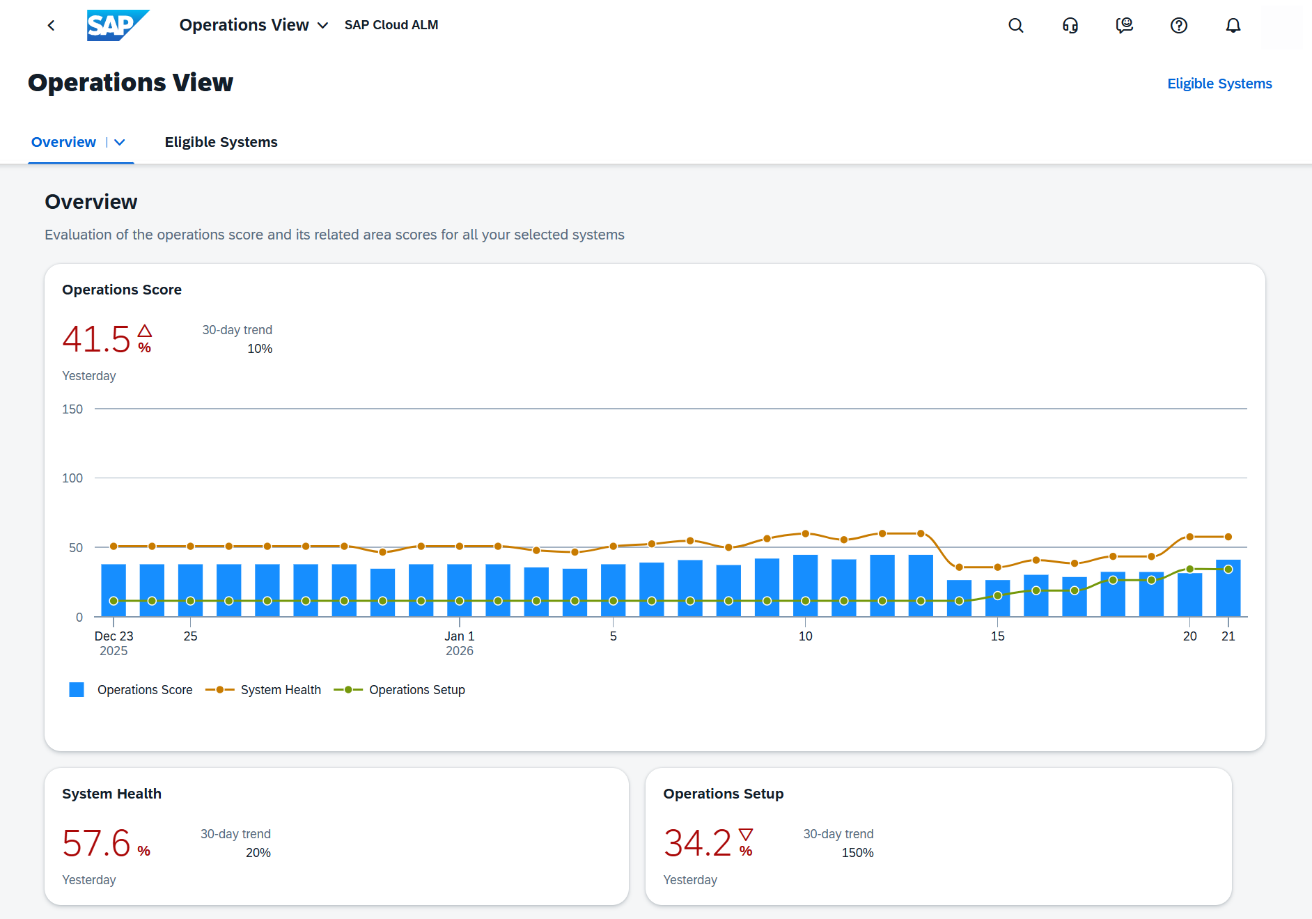 ​The Operations View now includes an Overall Operations Score and a new Operations Setup score, providing clearer insight into clean core compliance and operational readiness across eligible systems.​