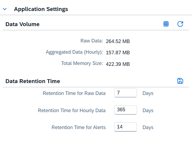The Application Settings in the Configuration menu have been enhanced to provide clearer visibility into data volume and retention settings.